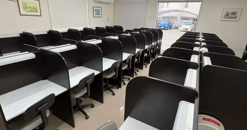 | 施設・設備 | 個別ブース型自習室、飲食ラウンジ(軽食自販機あり)、最新電子プロジェクター完備 |