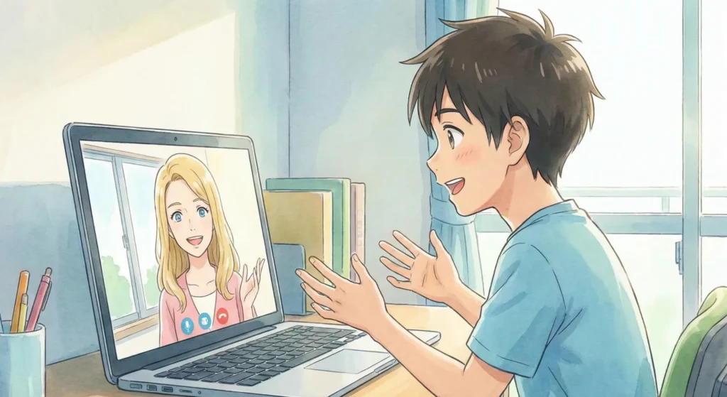 一応、家では一緒に英語でニュースを見たり、オンラインでアメリカに住んでいる友達と話したりして、英語を話す機会を作るようにしました。