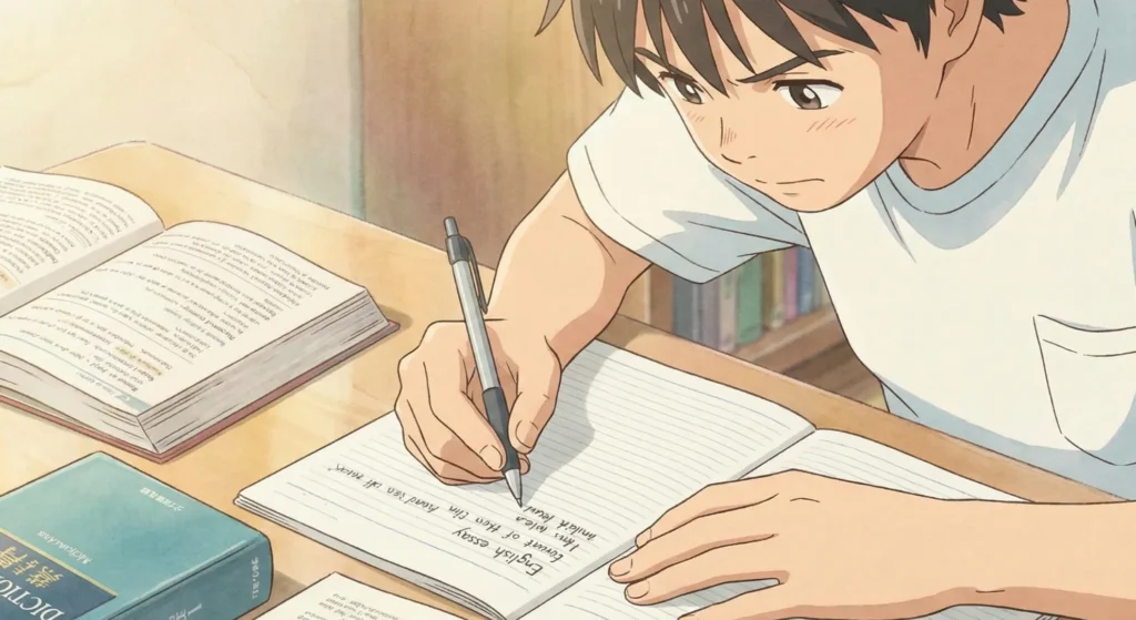 一番難しかったのがライティングだったけど、初めは自分の意見を英語で分かりやすく書くのが難しかった。