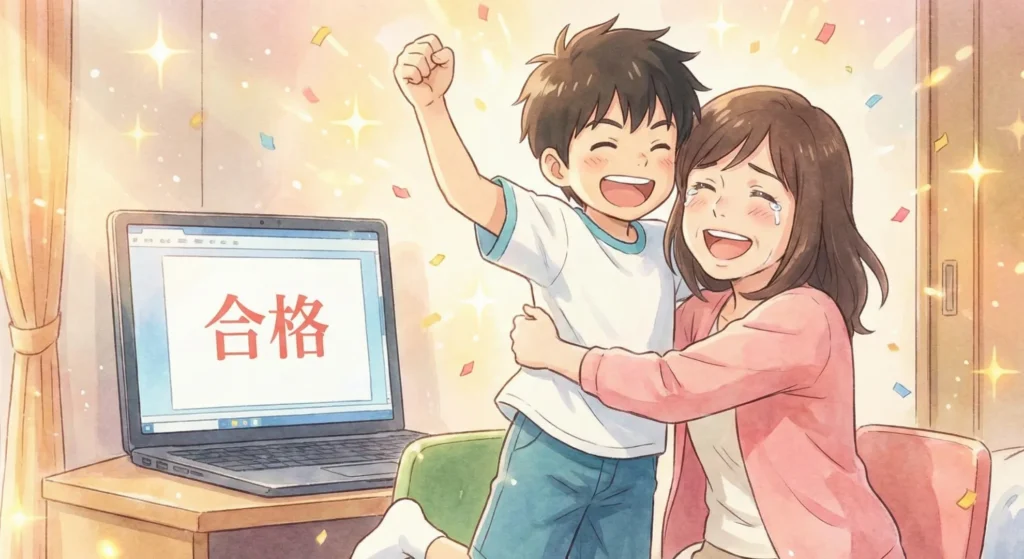 健太が帰ってきた時に、すぐにパソコンで開いて、「合格」って見えた時に一緒に騒いでしまいました。